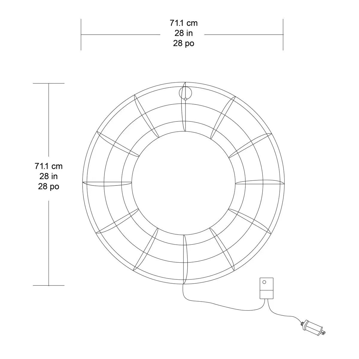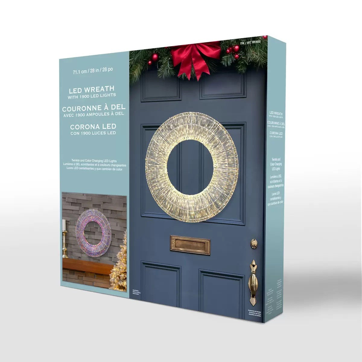 Bring festive charm to your home with this 28" LED Wreath featuring color-changing lights and multiple lighting modes. Choose between warm white or multi-color LEDs with steady or twinkle functions to suit any setting. The included control box offers memory and timer functions for hassle-free use. With durable construction and an 8-meter lead cord, it's perfect for both indoor and outdoor decorating. Easy to hang and built to last.