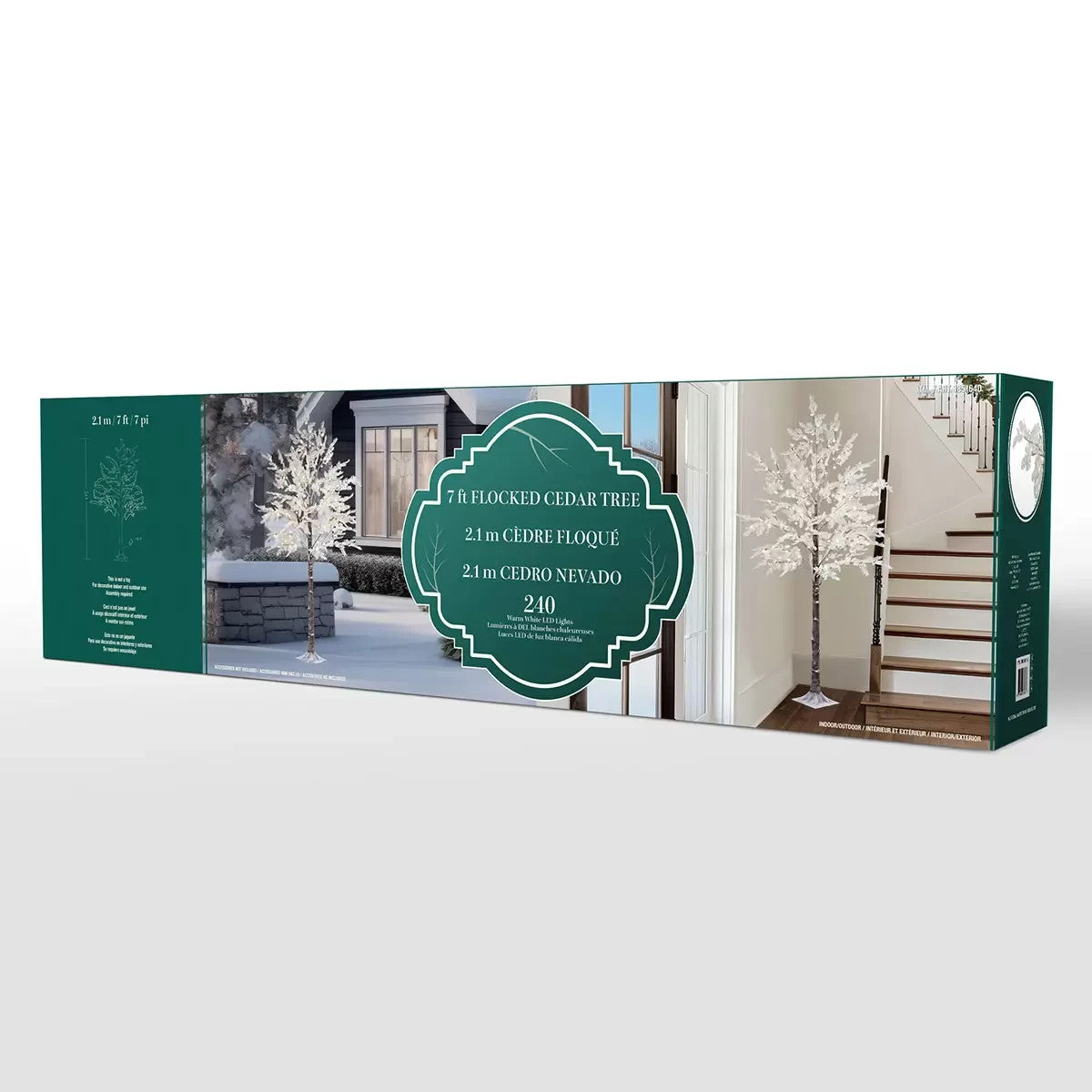 7ft Flocked LED Cedar Tree with Twinkling Lights