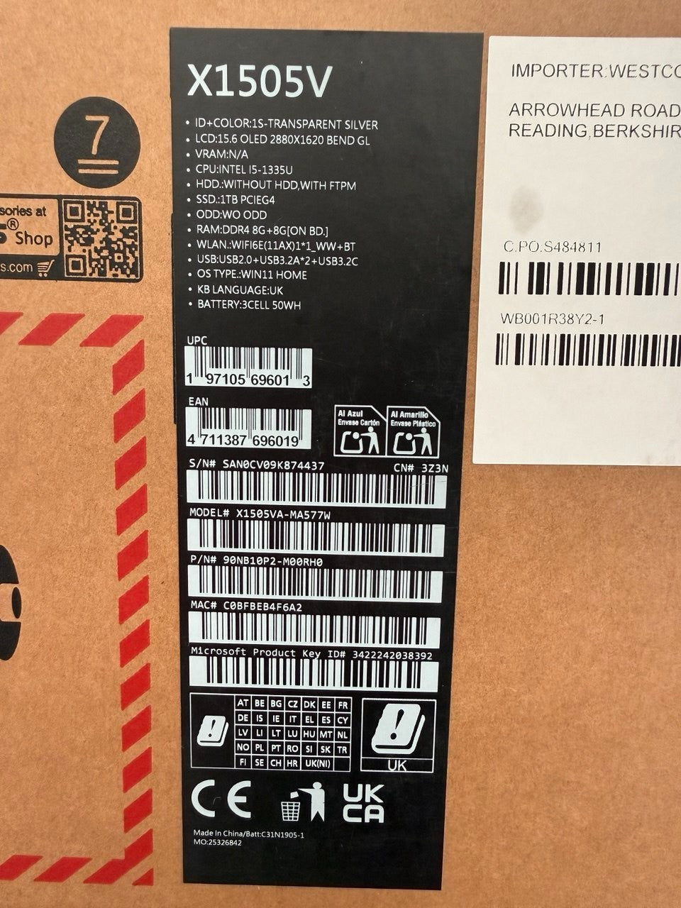 ASUS Vivobook, Core i5, 16GB RAM, 1TB SSD, 15.6 Inch OLED Laptop, X1505VA-MA577W