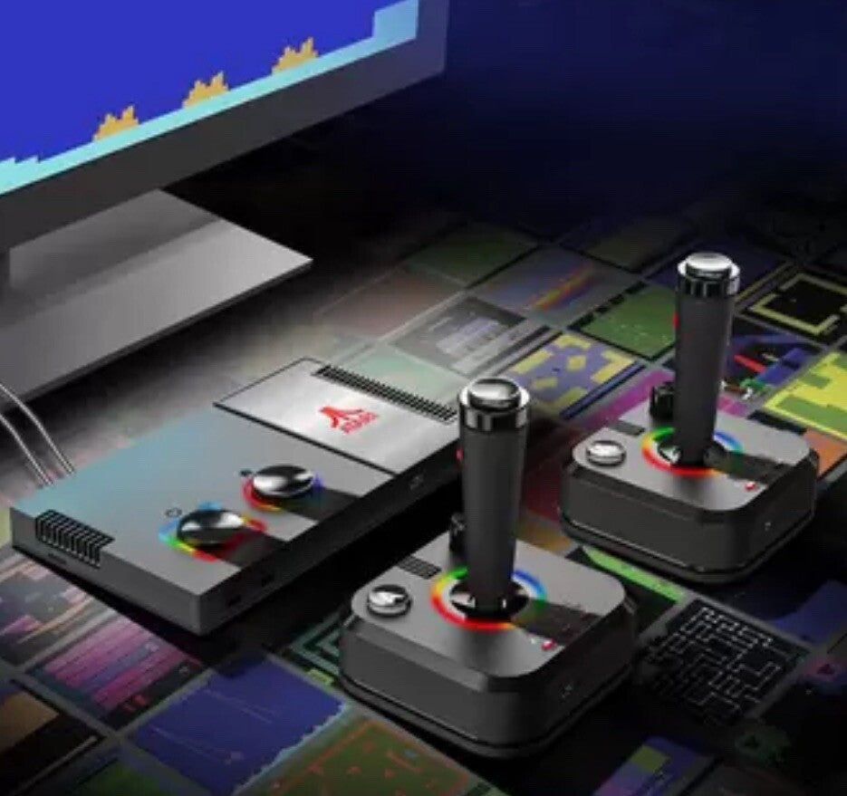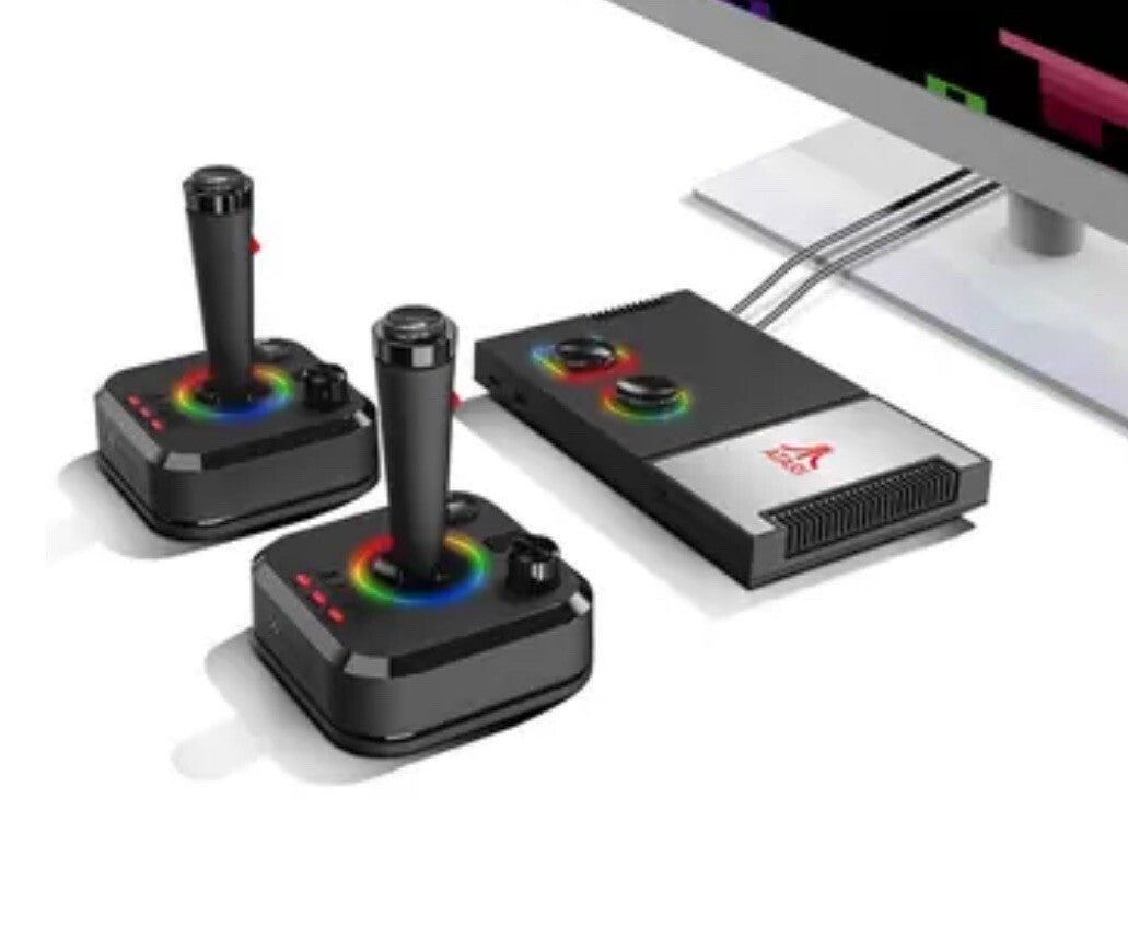 Two 2.4 GHz wireless joysticks, inspired by the original Atari® joysticks, include paddles for paddle games like Breakout®, Warlords® and many more.