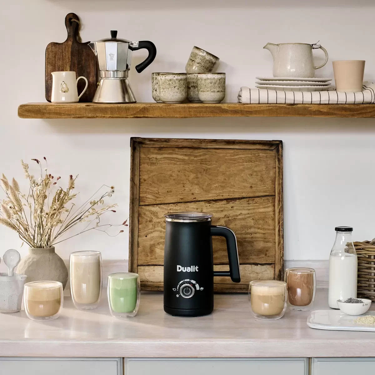 The Dualit Milk Frother Max is the perfect tool for creating barista quality frothed milk at home. With just the touch of a button, it effortlessly froths hot and cold milk, making it ideal for cappuccinos, lattes, hot chocolates, milkshakes, and iced coffees. Enjoy the generous capacity and versatility of Dualit's Milk Frother Max. Its perfect froth technology gives you full control of your froth. It can make up to five cups or two mugs at a time, ideal for friends and family. Its compact, sleek design makes it a stylish addition to any kitchen, delivering creamy, rich froth in seconds.