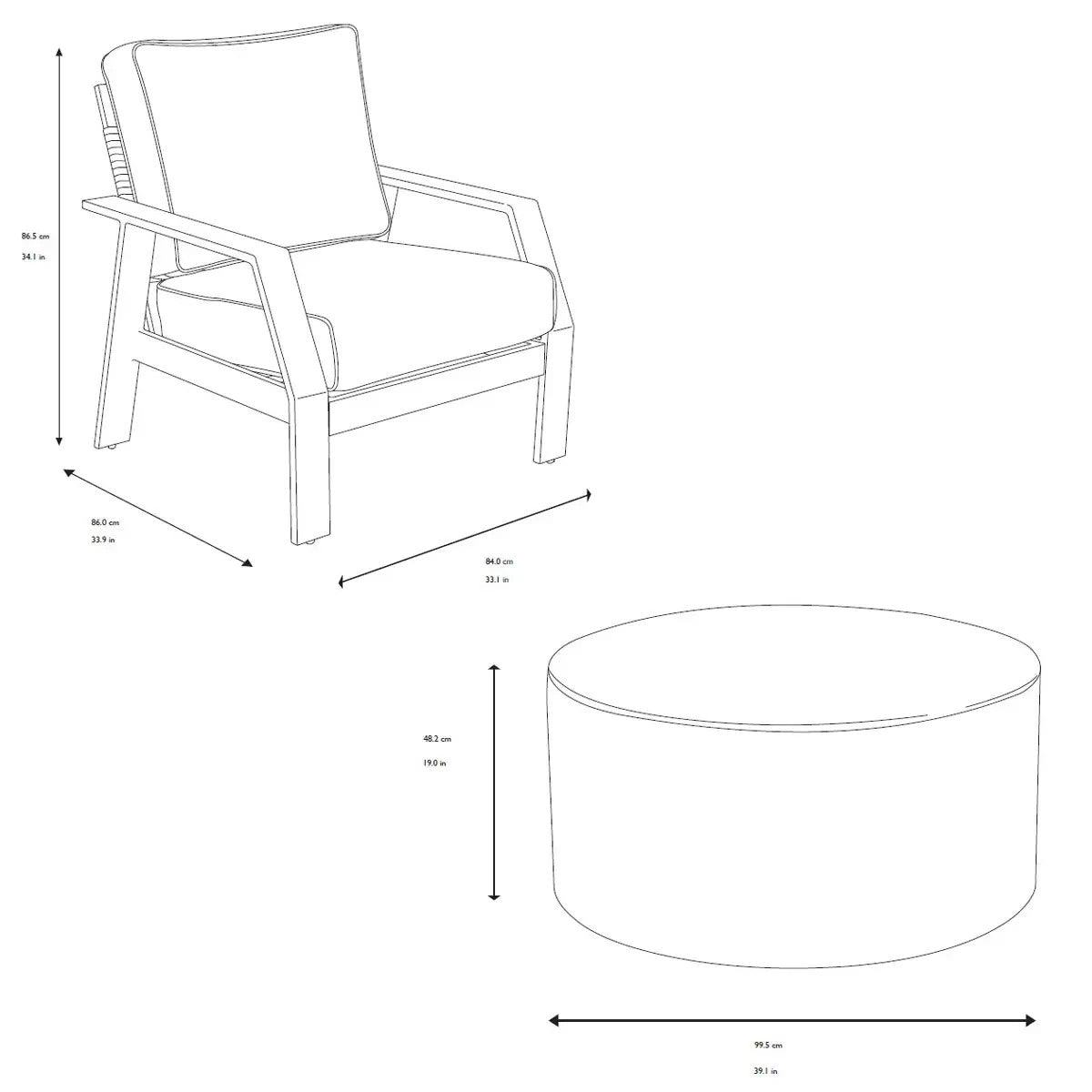 - Armchair: H 86.5 x W 84 x D 86 cm, 12.7 kg each