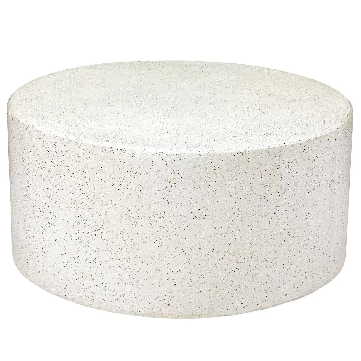 Seat and back cushions are cut extra thick and covered in high quality industry standard Sunbrella® fabric. The look is completed with a 40" round slab coffee table constructed of a Select Stone material with a speckled Terrazzo style paint finish.