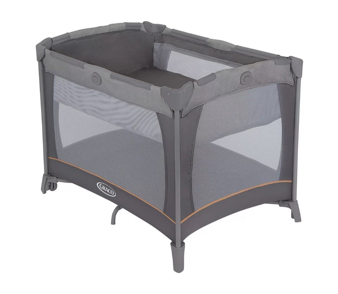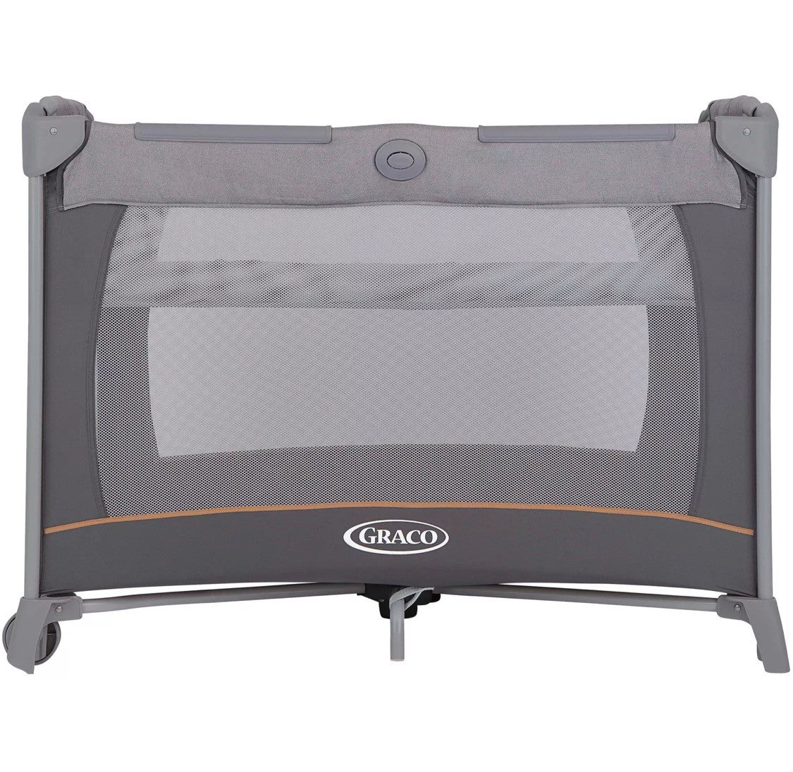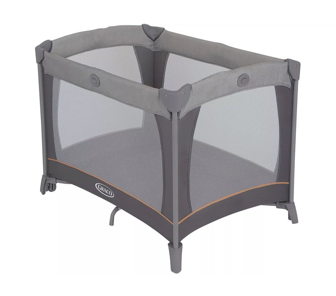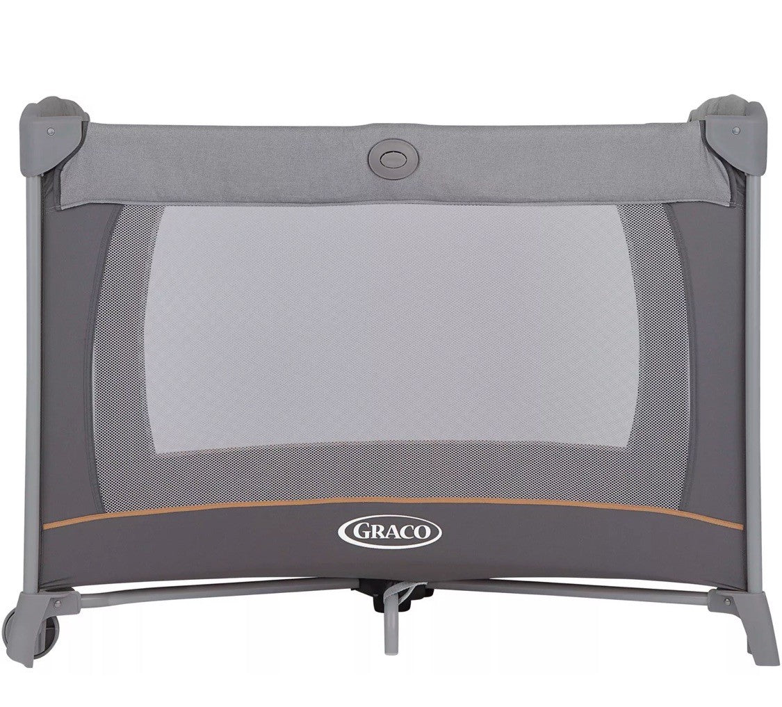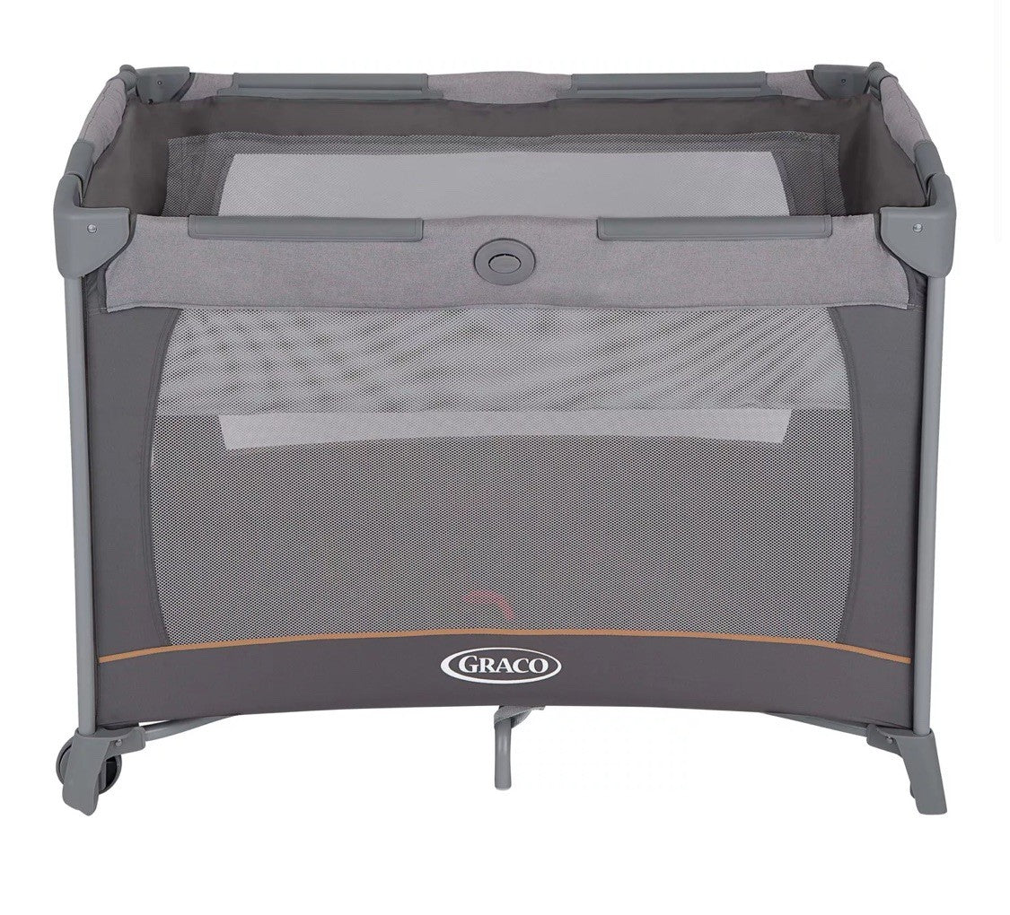 The Graco Contour Bassinet Travel Cot - Pebble is designed to help you keep your child comfortable and relaxed, both at home or away. The removable full-size bassinet gives your infant a comfortable and familiar sleep spot, then as baby grows, it transitions to a spacious toddler travel cot for a safe place for rest and play. With 2 wheels it can be easily moved from room to room. The travel cot folds down easily with the signature Graco push-button fold for a compact footprint. A carry bag is included for convenient transport and storage.