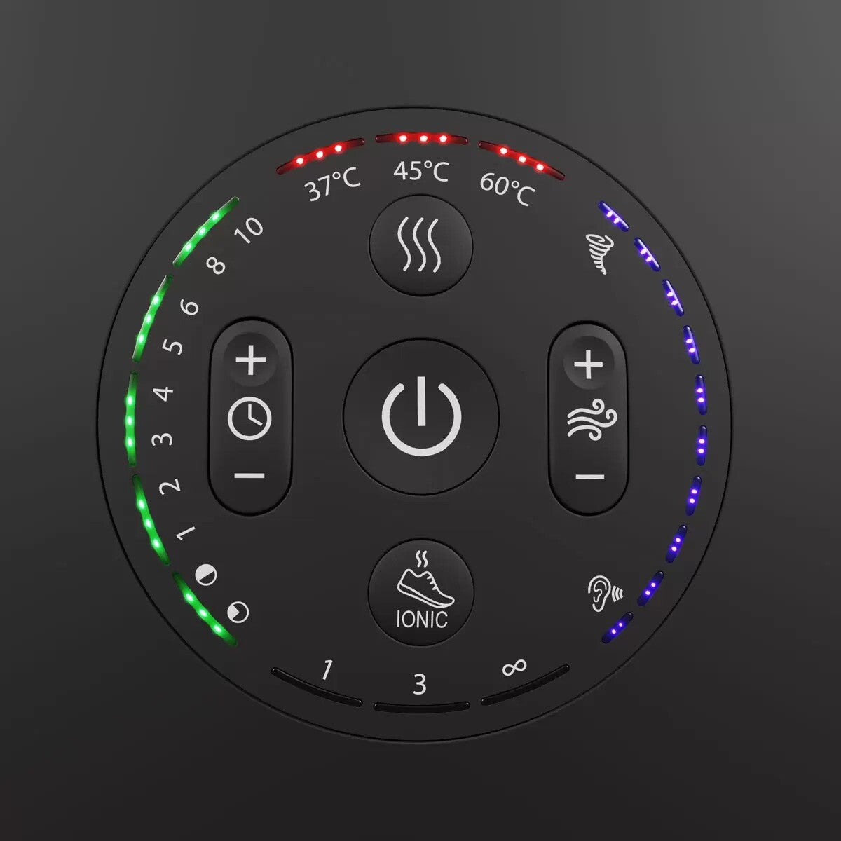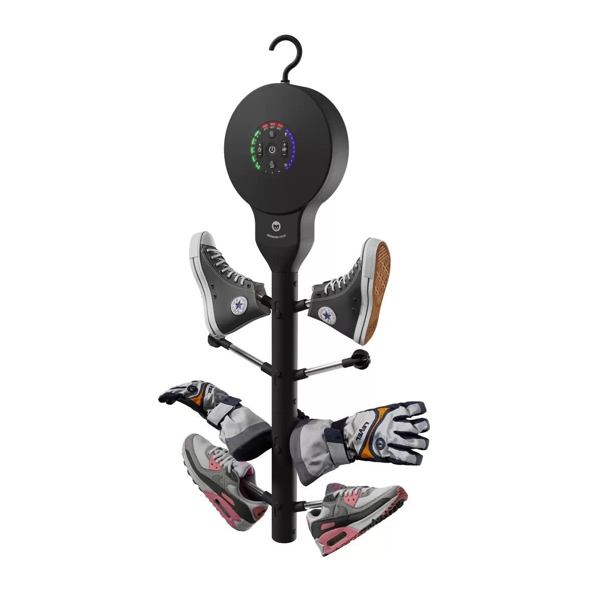 The air flow can be turned on and off for each pair for efficient drying. The Hedgehog Hanger is customised to meet your drying needs. The fan house features patented turbo technology, creating high air pressure that forces the humidity out of the items that need drying. Adjustable heat (0ºC, 37ºC, 45ºC, and 60ºC) for sensitive materials such as leather protects your golf shoes and foam-fitted ski boots. Timer offers dry time from 15 minutes to 10 hours. It provides 5 fan settings, from quiet mode for drying in open areas to tornado mode for super-fast drying. Fire-safe ceramic heating element, gel-coated electronics, and a brushless DC engine. The Hedgehog Hanger is portable and easy to bring when travelling.