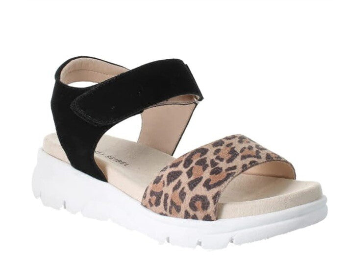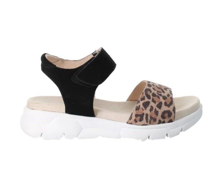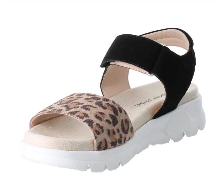 Josef Seibel Whitney 01, Size UK 4,EU 37 Leopard Print / Black Leather Sandals