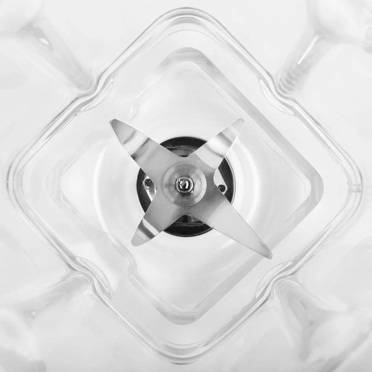 Unique asymmetric stainless steel blade, sharpened and precisely angled blends at 4 distinct angles to pull ingredients into the center to power through the toughest ingredients