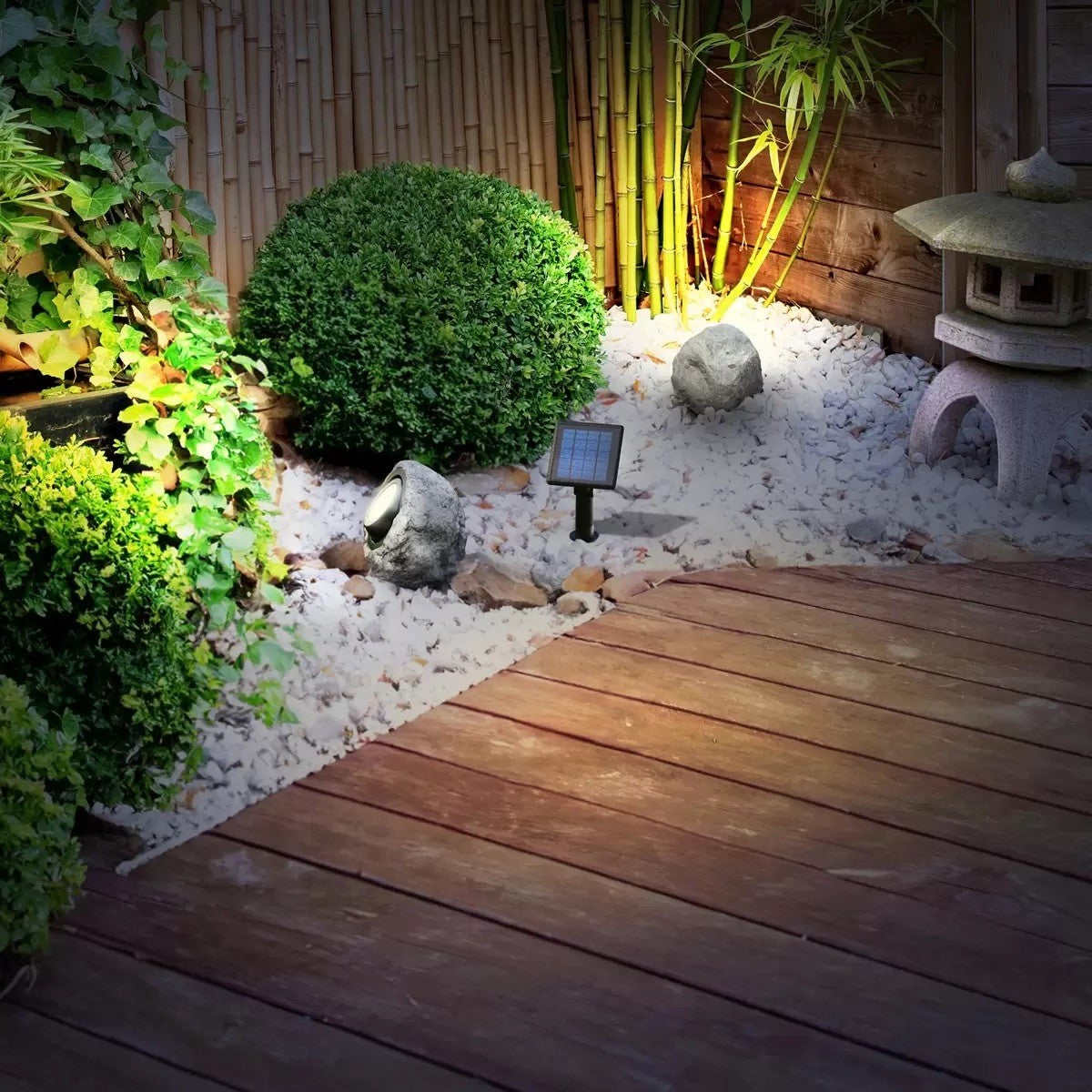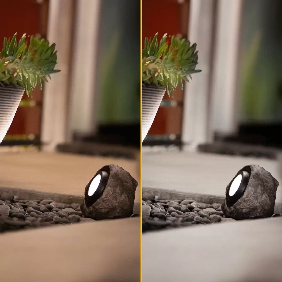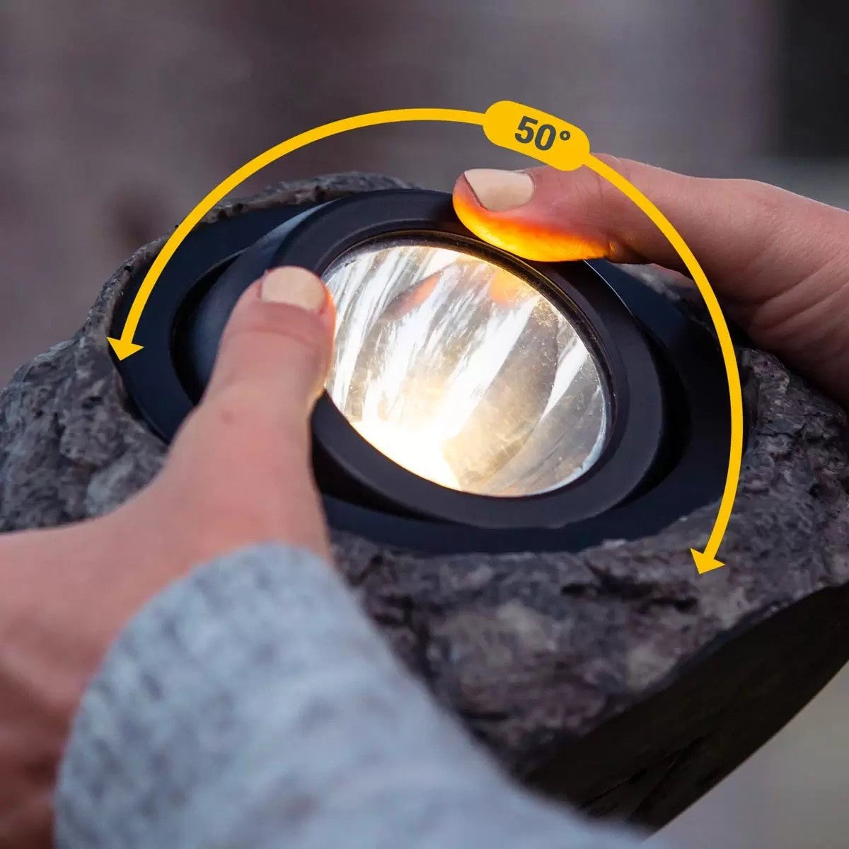 Enhance your outdoor living space with the Solar LED Rock Spotlight. This stylish and functional Rock Light blends seamlessly into your natural surroundings, casting a warm or cool glow on your garden, pathway, or lawn. With a 50° tilt range, you can highlight statues, shrubbery, or graze pathways. The built-in safety lighting feature illuminate’s potential hazards. Enjoy up to 8 hours of soft, 25-lumen light per night, all powered by the sun.