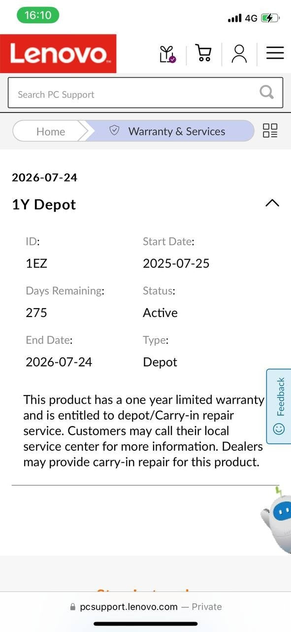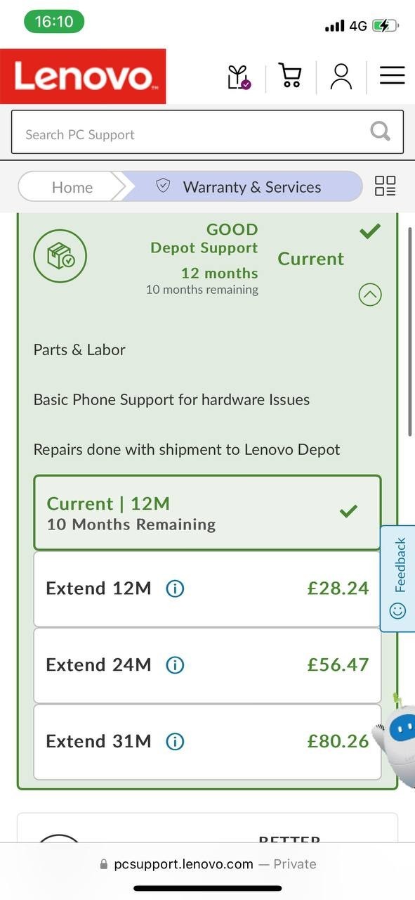 - Warranty until 24-07-2026 and can be extend for up to 31 months with Lenovo