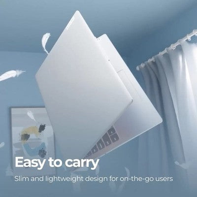 IdeaPad Slim 5i is so slim and lightweight that you won’t even know you’re toting it around. In Cloud Grey, the laptop is easily opened with one hand.