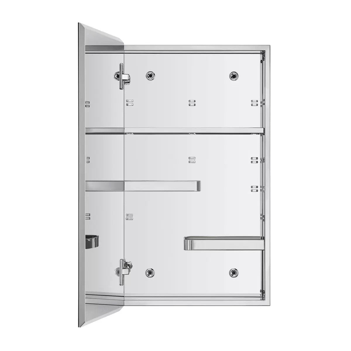 Upgrade your bathroom storage with the Sophie Bathroom Cabinet, designed for both elegance and functionality. Featuring adjustable staggered shelves, this cabinet offers versatile storage for items of varying heights. The polished stainless steel panels with a reflective mirrored finish on both the interior and exterior bring a sleek, modern aesthetic to any space.