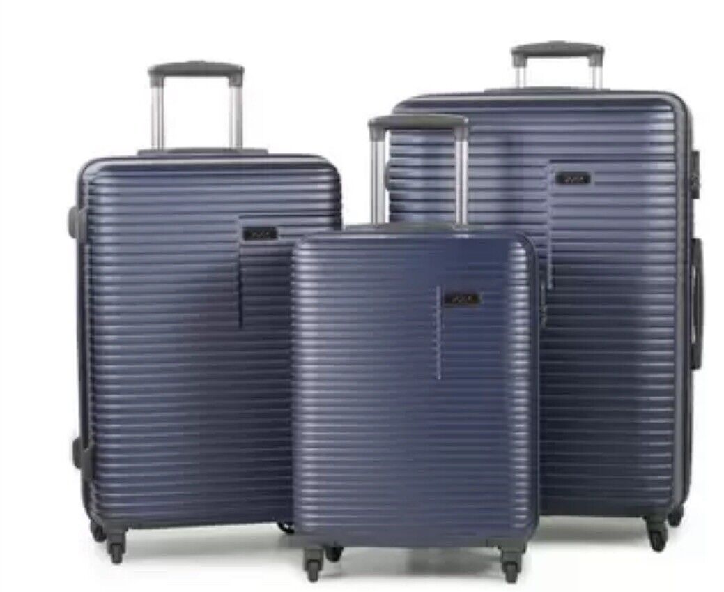 Rock Pacific 3 Piece Hardside Luggage Suitcase Set In Navy Spinner Case