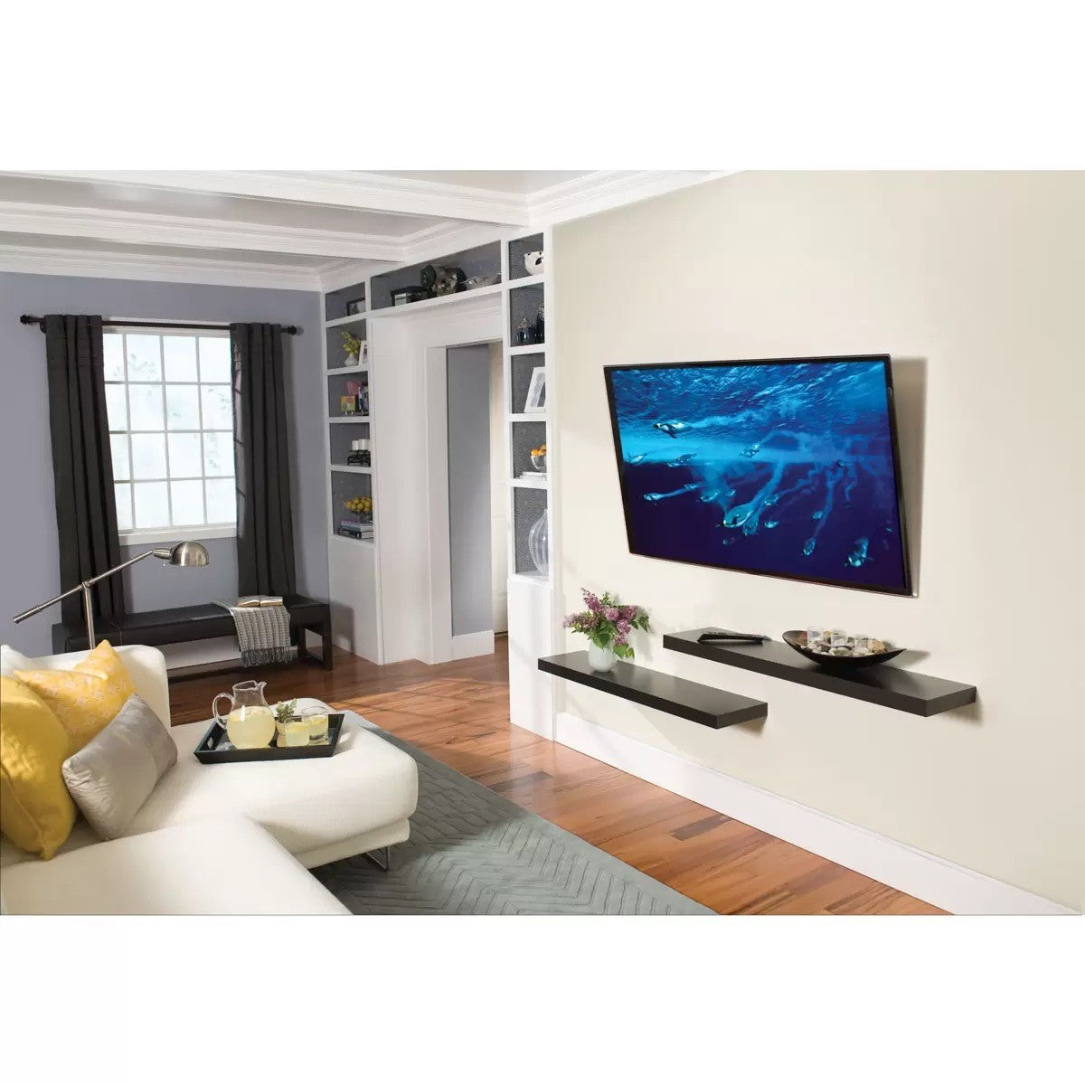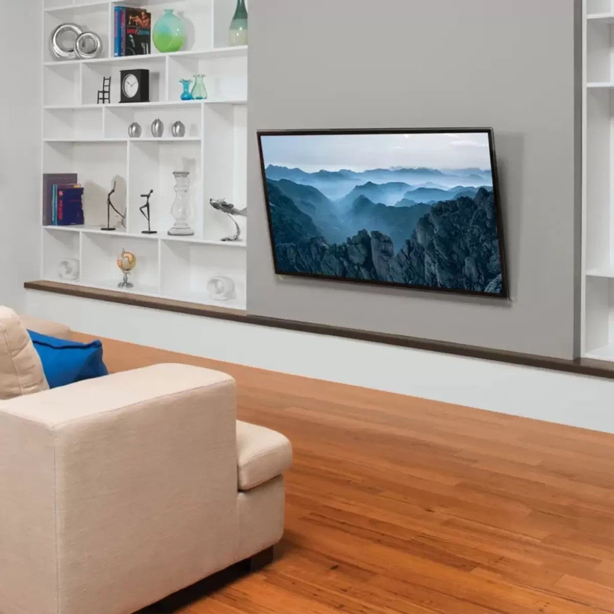 The SANUS VXT7 features an adjustable design that expands to offer a custom fit for most TVs, up to 300 lbs (136.08kg). Positions TV just 2.5" (6,15 cm) from the wall for a clean, flush appearance. ProSet Plus post install height and level adjustments allow for up to one full inch of height and level adjustment. Virtual Axis Fingertip tilt allows for easy TV adjustments and quick access to cables.