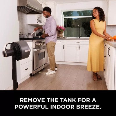 No hose required, no unsightly water buckets. Shark’s portable, removable MistPro Tank allows you to mist outdoors in both pedestal and tabletop modes.