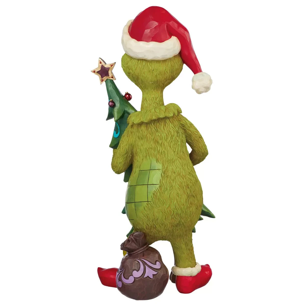 Bring holiday mischief to your décor with this hand-painted Grinch statue designed by Jim Shore. Dressed in a classic Santa hat and tugging a festive tree, this collectible captures the humor and charm of the season. Crafted in high-quality stone resin with vibrant colors and folk-art patterns, it showcases Jim Shore’s signature style. A whimsical centerpiece perfect for fans of the beloved holiday classic.