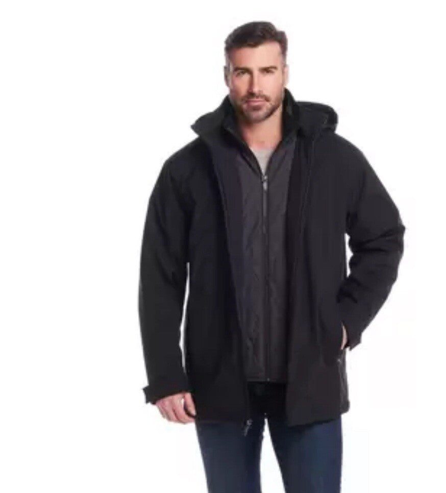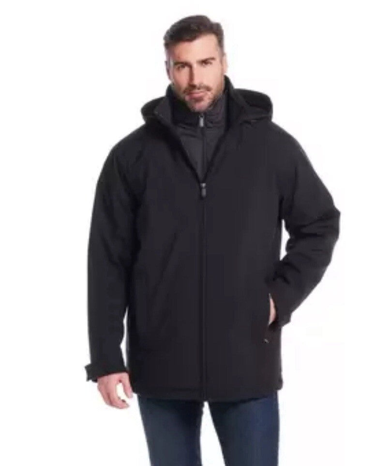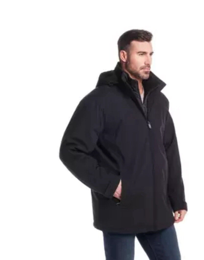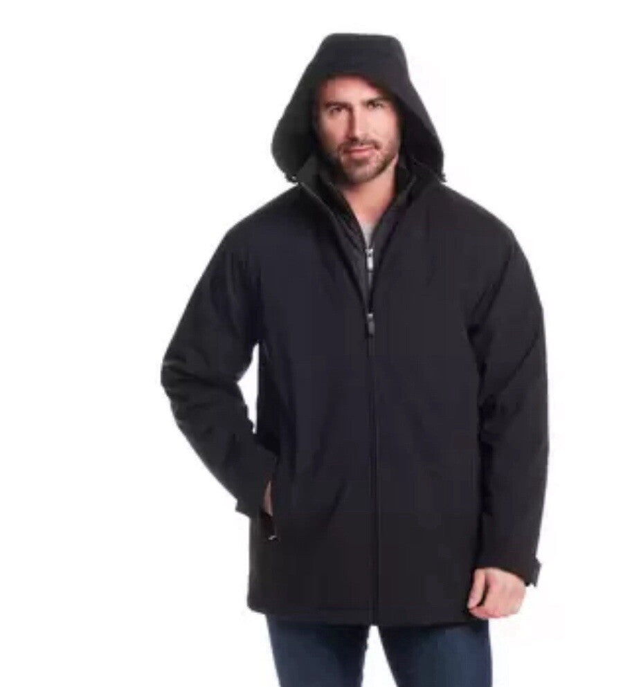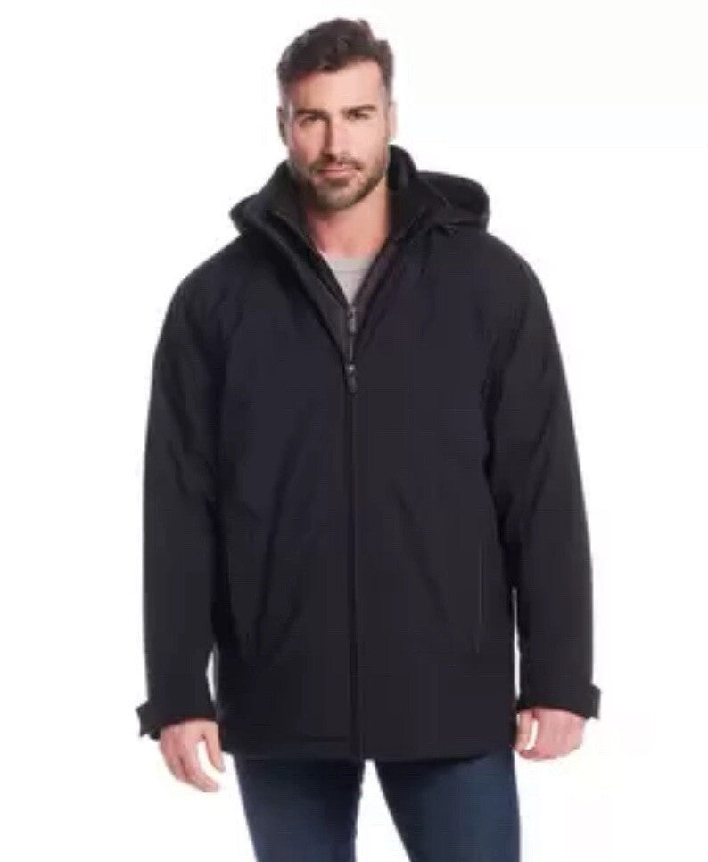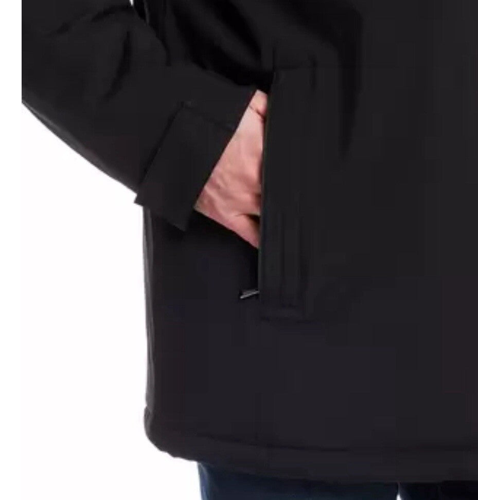 The Weatherproof Men's Ultra Tech Flextech Jacket has a durable and soft double layered bonded shell with 4-way mechanical stretch. It also features a quilted, zip closure interior "bib" for added warmth and protection. The removable hood also helps make this classic jacket perfect for those cold, winter days.